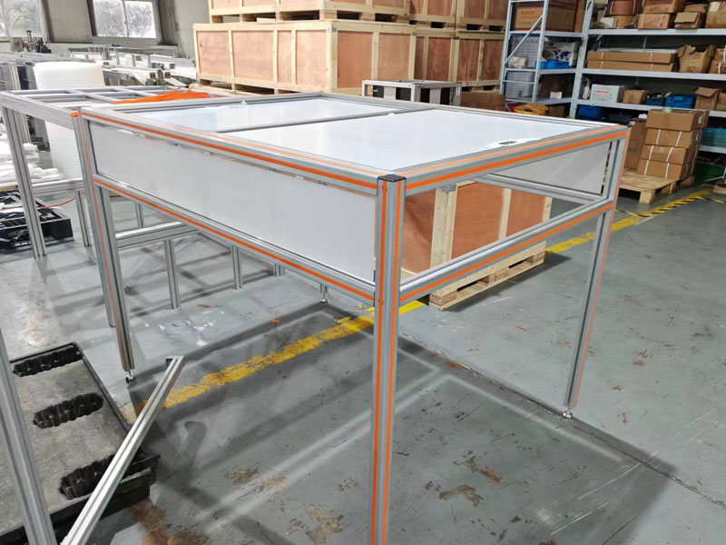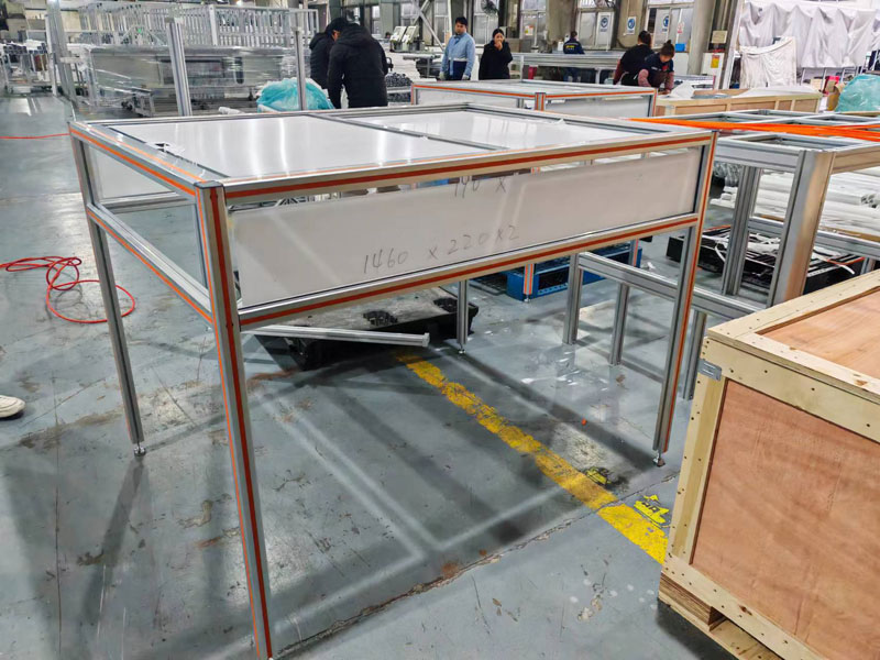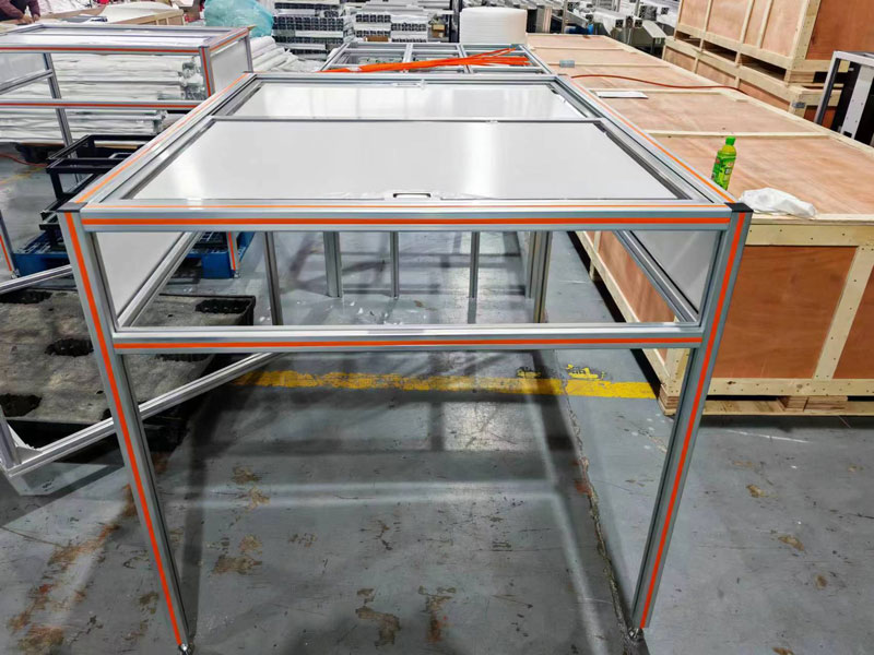 鋁型材防護罩是一種以工業鋁型材為設備外罩外殼,多見于各種非標機械設備的外罩,各種輸送線流水線外罩,大型潔凈棚外罩,焊房大型護罩等,能起到區域隔離,靜音防塵,保護設備及生產人員安全。鋁型材制作的防塵罩的樣式有很多,有些是密封的,可以起到隔離噪音的作用,凈化車間環境。有些是帶有開關門的,不僅可以起到防塵的作用,而且還利于后期維修工作。亞克力板也有透明的,茶色,紅色等顏色可以選擇。